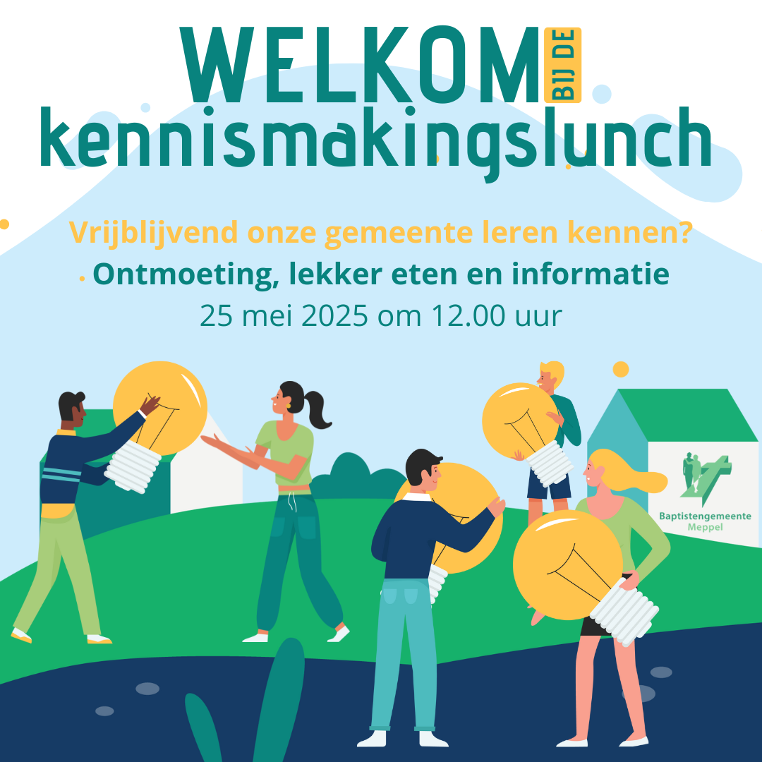 Vrijblijvend meer weten over onze gemeente? Wil je weten waar wij vandaan komen, waar we vandaag staan en onze visie voor de komende jaren? Overweeg je misschien om bij ons lid te worden? Allemaal vragen die reden kunnen zijn om aan te haken bij de kennismakingslunch op zondag 25 mei, na de dienst.